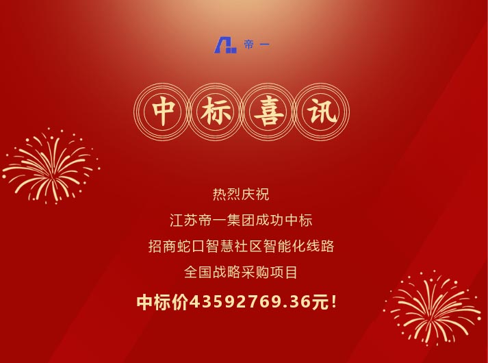 7月22日,江蘇帝一集團再創(chuàng)佳績,繼6月19日中標招商蛇口2023-2024年度綜合布線全國戰(zhàn)略采購項目后,又成功中標招商蛇口2023-2024年度智慧社區(qū)智能化線路全國戰(zhàn)略采購項目,為招商蛇口打造智慧社區(qū)提供服務(wù)。